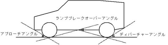 フロントはアプローチアングル、中央部はランプブレークオーバーアングル、リアはディパーチャーアングルと呼びます。